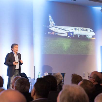 Mit diesem reichen Erfahrungsschatz, aus dem er schöpfen kann, hält Bruce Dickinson erstklassige Vorträge vor Unternehmen auf der ganzen Welt, in denen er erklärt, wie die Herausforderungen, die sich aus den scheinbar so unterschiedlichen Bereichen der Rockmusik und der kommerziellen Luftfahrt ergeben, die Herausforderungen der alltäglichen Geschäftswelt widerspiegeln, egal ob es sich um einen multinationalen Konzern, ein lokales Unternehmen oder eine Start-up-Initiative handelt; Bruce Dickinson betont die Bedeutung von Teamarbeit, Kommunikation, Vorausplanung und der Erkenntnis, dass unvermeidliche Rückschläge ein Anreiz sein können und sollten, um zu lernen, sich anzupassen und erfolgreich weiterzumachen.
