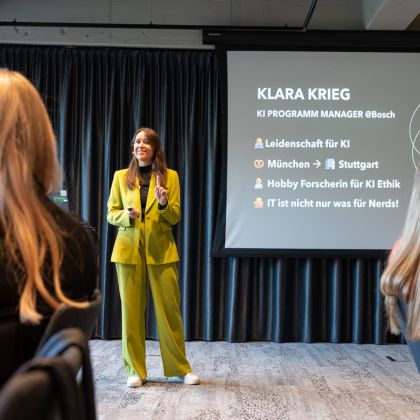 Neben ihrer beruflichen Tätigkeit engagiert sich Klara Krieg in der Forschung zu Themen wie diskriminierender KI und Fair AI. Sie hält Vorträge sowohl intern bei Bosch als auch auf externen Bühnen und möchte ihr Publikum mit einer klaren, anwendungsorientierten Sicht auf Künstliche Intelligenz inspirieren und eine praxisnahe Perspektive auf dieses komplexe Themenfeld vermitteln.