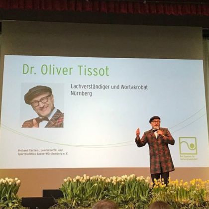 Für viele gilt Oliver Tissot als „Deutschlands bester Stand-Up-Comedian im Businessbereich“. Wortakrobatisch jongliert er Hochgeistiges mit Tiefgang und Tiefschürfendes in Hochform.